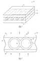 Hydrogen production and collection efficiencies can be optimized through manipulation of the composite fermentative membrane module configuration.FIG. 2 illustrates a view of acomposite membrane20, according to an embodiment. Thecomposite membrane20 includes a first layer22 of a polymer including immobilized bacteria, as described herein. The first layer22 is disposed between asecond layer24 and athird layer26, as described herein.FIG. 2 illustrateshollow fibers28 which are embedded at least partially in the first layer22, thesecond layer24, and thethird layer26. Thehollow fibers28 include a hollowfiber membrane wall30. In various examples, a thickness of the hollowfiber membrane wall30 is varied so as to increase efficiency of the gas diffusing into alumen32 or increase quality of the gas collected. For example, thickness of the hollowfiber membrane wall30 is thinner at the first layer22, relative to the thickness of the hollowfiber membrane wall30 thickness at thesecond layer24 and thethird layer24. Such an example provides the benefit of allowing easier diffusion of the gas from the first layer22, into thelumen32. In an example, the hollowfiber membrane wall30 has a uniform thickness. Further, anintersection34 of the twohollow fibers28 ofFIG. 2 includes an overlap of the twohollow fibers28, such that the hollow fiber construction of the composite membrane is more rigid. That is, theintersection34 has a greater thickness than the thickness of an individual hollowfiber membrane wall30.