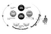 FIG. 22 is a graph that shows a competitors' sentiment analysis produced according to the invention.