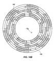 The configuration of each of the first and secondreflective structures130,136 having a respectivereflective surface133,142 extending substantially entirely around a respective circumference of each of thereflective structures130,136 provides a two-dimensional image on theimage sensor106 representing a 360 degree view of the entire circumference of the lateral side surface of the stack of gaming tokens on the bet placement surface of the transparent cover. Such an image may be referred to in the art as a “pericentric” or “hypercentric” image. In this manner, theimage sensor106 may capture a two-dimensional image representing a 360 degree view of the entire circumference of the three-dimensionallateral side surface146 of the stack ofgaming tokens124, as shown inFIG. 14A. In the pericentric image of the stack of gaming tokens as shown inFIG. 14A, the lateral side surface of each gaming token is represented as an annular shape. The annular shapes representing the lateral side surfaces of the gaming tokens are concentrically located relative to one another in the pericentric image when the chips are vertically aligned, with the annular shapes corresponding to lateral side surfaces of gaming tokens at the bottom of the stack being located closer to the center of the image and the annular shapes corresponding to lateral side surfaces of gaming tokens at the top of the stack being located at the outer radial periphery of the image.