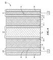 Referring now toFIG. 1, there is schematically shown a section view of a first embodiment of an electrochemical device constructed according to the teachings of the present invention, the electrochemical device being represented generally byreference numeral11. (For simplicity and clarity, certain standard components ofelectrochemical device11, such as electrical leads, cell frames, etc., are not shown or described herein.)