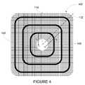 In another case, the angularly varying distance from thecorrugation106 to thecentral opening102 may be at a maximum where an angle between the angular position of the corrugation relative to the central opening and a direction of one of the sets of fabric is 45 degrees. As shown inFIG. 4, the distance between thecorrugation106 and the central opening along thecross section112 is12. As indicated above, thecross section112 is 45 degrees from a direction of one of the two sets of fabrics. Accordingly, the distance12may be a maximum distance between thecorrugation106 and thecentral opening102.