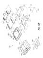 Referring still toFIGS. 19D-E and22A-B, a method for attaching the shielding layers1926,1928, thebonding layer1924, thesensing element1920 and thePCB1922 to theframe1918 includes providing theinner shield1926 and attaching it to theframe1918. Thesensing element1920 andbonding layer1924 are provided and also attached to theframe1918. A printedcircuit board1922 is then provided. The printedcircuit board1922 is placed on top of thesensing element1920 such that afirst edge1980 of the printedcircuit board1922 is placed over a first conductive portion of thesensing element1920, and asecond edge1982 of the printedcircuit board1922 is placed over a second conductive portion of thesensing element1920.