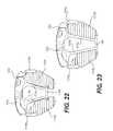 As shown inFIG. 20A, theplating system905 includes afirst spacer910athat is retained between a shorterouter extension970 and a longerinner extension975 of theplate member950. The shorterouter extension970 of the plate is configured to be received innotch917 of thespacer910a, while the longerinner extension975 of the plate is configured to be received in notch of thespacer910a. In addition, advantageously, the shorterouter extension970 includes awindow972 and the longerinner extension975 includes awindow974. Each of thewindows972,974 is configured to receive a bump out portion of the spacer910, thereby helping to retain the spacer910 to theplate member905. In addition, thewindows972,974 help to provide a means to visualize fusion (e.g., in a lateral image) that is occurring once the spacer is implanted within a disc space. Similarly, theplating system905 includes asecond spacer910bthat is retained between a shorterouter extension970 and a longerinner extension975 on an opposite side of theplate member950. While in the present embodiment, each of the longerinner extensions975 is separated from the other without any connecting member, in other embodiments, a connection bar or bridge (such as shown inFIGS. 21A and 21B) can extend between the twoinner extensions975. Advantageously, when theplating system905 is placed in a disc space, graft material can be packed between the twoinner extensions975 to promote fusion within the disc space.