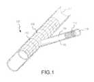 In yet another alternative embodiment, a guiding catheter, or a deployment tube similar to a guiding catheter, may be placed coaxially within the side-branch member106 in lieu of the 1.2 mm diameter rod. If the side-branch member106 is equipped with the side-branch stent112, the guiding catheter or tube may be positioned such that its distal end abuts the proximal end of the side-branch stent112. When so positioned, the side-branch stent112 may be configured with an inner diameter approximately equal to that of the guiding catheter or deployment tube. In such an arrangement, the guiding catheter or deployment tube may provide a well-defined passageway for other devices and may aid in the extension of the side-branch member106. Alternatively, with the guiding catheter or deployment tube positioned as described, the distal end may be releasably attached to the graft component, for example by an adhesive, thermal bond, or other suitable method.