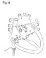 The first step is the insertion of a guide wire, which can be carried out by means known in the art. A needle carrying a guide wire is placed on the groin area of the patient, adjacent the femoral artery. Pressure is applied so that the patient's skin is punctured by the tip of the needle and pushed through the skin and tissues into the femoral artery. Once in place, the guide wire is advanced along the femoral artery and up theinferior vena cava25. With reference toFIG. 9, the guide wire exists theinferior vena cava25 and enters theright atrium26. The septal puncture between the right and left atrium can also be carried out by means known in the art. A guide wire now extends from outside the patient, into the femoral artery through the skin puncture, theinferior vena cava25, theright atrium26, the atrial septum and theleft atrium3 lodged preferably in superior left pulmonary vein. Next, a large and steerable support sheath can be deployed into the left atrium over the wire to facilitate the final steps of the procedure. The skin puncture and/or septal puncture could equally be carried out using theinsertion device18 according to the present invention, although theinsertion device18 is most advantageous when performing an extra cardiac puncture as described below.
