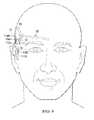 FIG. 26 depicts two implanted IPGs with leads to cover both sides of the head. Prominent here are Fronto-Parietal Lead (FPL)20band Occipital Lead (OL)30b, which lie within thesubcutaneous layer82. The two structures are numbered identically with respect to their compliments, and they are implanted identically, one on the left side of the head and one on the right side of the head, as described above. Also illustrated iszygomaticotemporal nerve62 and thesupratrochlear nerve72.