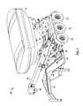 More particularly, when theconveyor18 is in the unloading position, shown inFIGS. 2, 4, 5 and 8, theinlet end36 is beneath theseed outlet42 of thehopper12. When theconveyor18 is in the cart loading or filling position, shown inFIGS. 6 and 7, theinlet end36 of theconveyor18 is spaced apart from thesecond frame16 and the outlet end38 of theconveyor18 is positioned above thehopper12 so that seed can be loaded into theconveyor inlet36 and discharged from theconveyor outlet38 into thehopper12. The angle of theconveyor18 and the location of theoutlet38 relative to thehopper12 can be adjusted by extending and retracting thearm40 of thecylinder34. Thepivot connection41 allows theconveyor18 to be pivoted relative to thecylinder34, which pivots about its lower end relative to theframe16. Thecylinder34 also slides theconveyor18 rearwardly on theframe16 when thearm40 is retracted to a transport position, as seen inFIG. 4.