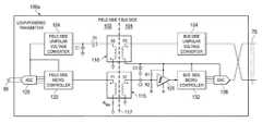 Power is supplied to the various components shown in the example ofFIG. 2 from the busside voltage converter134 and the fieldside voltage converter124. Both voltage converters are unipolar converters. Unipolar voltage converters generate positive voltage, but not negative voltages. For example, either or both of the voltage converters may generate 3.3V output voltages to power the various components depicted inFIG. 2.