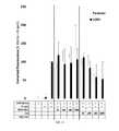 Example 15LGR5 is Upregulated in Colorectal Cancer Tumors Treated with FOLFIRI Regimen (5FU, Leucovorin and Irinotecan)To investigate if chemo treatment alters LGR5 expression in colorectal tumors, mice were treated every 5 days with 5FU (30 mg/kg i.p), leucovorin (90 mg/kg) and 2 different doses of irinotecan (24 mg/kg or 8 mg/kg). The result of those studies showed that while CT3 tumors were sensitive to the chemo regimen, CT1 tumors did not full regress and showed some resistance to the regimen (FIG. 4). To examine the effect of FOLFIRI treatment of LGR5 expression, total mRNA was extracted from CT1 and CT3 patient derived tumors and expression of LGR5 and was determined by qRT-PCR and was analyzed by subtracting the Ct value (cycle threshold) of LGR5 in each sample from its corresponding GAPDH transcript to generate DCT (delta Ct) values. Data are presented as 2 to the power of DCT. Analyses of abundance of LGR5 showed that the LGR5 transcript is increased in both CT1 (for about 2 folds) and CT3 tumors (approximately 3.5 folds) compared to corresponding saline treated tumors.