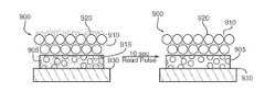 In contrast to the conventional 5 to 10 second read pulse, when the working electrode20 (FIG. 2) is configured with the DBL of the present invention, shorter read times are preferred.FIGS. 9A and 9B depict a workingelectrode900 having aconductor surface930 and aDBL905 during the application of long and short read pulses. A sample (not shown) is applied to the workingelectrode900 and includesRBC920 residing on theDBL905, externalmeasurable species910 residing in the sample, and internalmeasurable species915 residing within theDBL905.