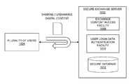 Referring toFIG. 10, the present disclosure describes an exchangecontent access facility1008 in association with thesecure exchange server1002 that improves the security with which a plurality ofusers1004 collaborate freely, including through a plurality of different content sharing devices and facilities, while providing lifetime control of their content. For example, suppose a user sent quarterly sales data to an old accounting firm, employee records to someone outside of HR, the wrong contract to the wrong vendor. When a user ‘un-shares’, content access may be instantly revoked, including any content that may have been from copies of the original content. In embodiments, the user may have total lifetime control of each and every content item, such as documents, emails, communications, and the like. In embodiments, the content may be stored and tracked in asecure database1012. Users may share and revoke access to content all the way down to the document level, providing a secure place to upload files and share them across devices. In this way, users may be provided a secure storage facility for company sensitive information, where users are able to work more securely, such as with their existing infrastructure (e.g. seamless integration with applications like Microsoft Outlook, SharePoint, and the like). The un-share facility may allow a user to create a new work stream, securely upload the documents, and work with teams that are enabled to securely collaborate. In addition, the un-sharing facility may provide for reports, audits, summaries, and the like through a dashboard facility, such as a summary view of all work streams, customized security settings, ability to add new participants, provide automated reporting, and the like. The exchangecontent access facility1008 may utilize a user logindata authentication facility1010 to authenticate users' access to content, where there may be the option of having a single sign-on in association with other user logins. In embodiments, the login may utilize security hashing in a redirect URL, such as to secure the login against Phishing attacks. The single sign-in may extend to mobile devices, including personal mobile devices, were a lookup table may be used to verify that the user has single sign-on capabilities or not.