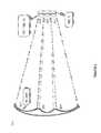 In some embodiments, the output can be split asymmetrically between azimuth and elevation, allowing for sophisticated beam control. In various embodiments, the aperture can be divided into several sub-apertures. Some or all of the sub-apertures can have different steering capabilities, enabling such an arrangement to produce a plurality of foci, which may be adjacent to each other.FIG. 2 shows a divided aperture apparatus in accordance with embodiments of the present invention.Source aperture201 of can be divided intoseparate sub-apertures202,203 and204. Each sub-aperture202,203 and204 has itsown target focus205,206 and207, respectively. The phase of each of the three sources shown inFIG. 2 can be altered to change the focal length of the elevation aperture. The beam steering can be mechanical, electronic, or a combination of the two. This arrangement can also be focused by changing the phase between the sources. The efficiency of the transmitter can be maintained for targets over a range of depths around the mechanical foci established by the curvature of the sources.