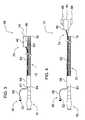 FIG. 2 illustrates a complementary metal-oxide-semiconductor (CMOS) imaging device orstructure40 such as those built by Fujikura (Japan) or Medigus (Israel). Thestructure40 extends fromproximal end42 todistal end44 and includes aCMOS module46,lighting48, miniaturecoaxial cables50, and aconnector52. TheCMOS module46 is at the distal end ofimaging structure40. Themodule46 has a housing that extends fromproximal end54 todistal end44. The CMOS module houses (not shown) a lens, a CMOS sensor, and a flexible printed circuit (FPC), which are connected to the miniaturecoaxial transmission cables50, all of which are glued together inside the housing. TheCMOS module46 has a preferred length of about 5 mm and a preferred diameter of about 1.2 mm. Other dimensions are also contemplated. The range of dimensions for the housing will depend on the state of technology of the components inside the housing. Today's CMOS sensors are large, as CMOS technology improves diameters for the overall part will decrease. The housing, which is round, is made of a rigid material. The housing can also be made of less rigid materials such as polyimide or heat shrinkable polyethylene terephthalate (PET), which would allow for a thin protective wall. Also, the housing need not be round, it can be oval or other shapes to reduce the overall OD to less than about 1.2 mm. Alternatively, the housing can be left off and the lens, CMOS sensor, and FPC with miniature coaxial cables and optional strain relief can be encapsulated in a protective layer of adhesive that tapers down as it extends proximally as in the embodiment ofFIG. 16 discussed below.