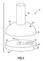Theupper portion32 is a resiliently deformable member that is transitionable between an undeformed position (FIGS. 3 and 6) and a deformed position (FIGS. 4 and 5) as will be discussed in more detail below. Theupper portion32 is formed of a flexible material such that theupper portion32 can be depressed by pressure applied by a user. After the pressure is removed, theupper portion32 returns to its original or undeformed position and its domed-shape. In one embodiment, theupper portion32 of thehousing30 includes a vent orcheck valve52 to allow air to be expelled upon depression of the dome-shapedupper portion32.