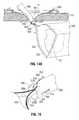 FIG. 14B is cross-sectional view of the distal end of the cartridge assembly inserted through the access port and into the internal body cavity, wherein the end effector assembly is in a deployed position to deploy a specimen retrieval bag;