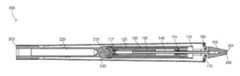Illustratively,cable810 may be disposed withincable housing710,optic fiber guide230,piston150, innerhypodermic tube140,nosecone105, andhousing tube300. In one or more embodiment,cable810 may be disposed withinhousing tube300 wherein cabledistal end811 may be adjacent to housing tubedistal end301. Illustratively,cable810 may be disposed withinhousing tube300 wherein a portion ofcable810 may be adjacent to a portion of firsthousing tube portion320. In one or more embodiments, a portion ofcable810 may be fixed to a portion ofhousing tube300, e.g., by an adhesive or any suitable fixation means. For example,cable810 may be fixed to a portion ofhousing tube300 by a weld, a mechanical means, a tie, etc. Illustratively, a portion ofcable810 may be fixed incable housing710, e.g., cableproximal end812 may be fixed incable housing710. In one or more embodiments, a portion ofcable810 may be fixed incable housing710, e.g., by an adhesive or any suitable fixation means. For example, a portion ofcable810 may be fixed incable housing710 by a press fit, a weld, a tie, etc. Illustratively,cable810 may be fixed incable housing710 andcable810 may be fixed to a portion ofhousing tube300.Cable810 may be manufactured from any suitable material, e.g., polymers, metals, metal alloys, etc., or from any combination of suitable materials.