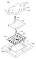 FIG. 14A depicts an exploded view of an assembly apparatus for affixing, for instance, a security element(s) about the inner perimeter of the electronic enclosure over the inner-sidewall tamper-respondent sensor and an inner main surface tamper-respondent sensor, in accordance with one or more aspects of the present invention;