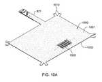In the depicted configuration,multiple corner tabs1010 are provided, with at least onecorner tab1010 being provided at the at least one inner-sidewall corner. In the exemplary embodiment illustrated, twocorner tabs1010 are provided at each corner of the inner main surface tamper-respondent sensor820. Thesecorner tabs1010 include circuit lines1005 (FIG. 10A) and are sized to cover a respective one of the uncoveredregions915 in inner-sidewall tamper-respondent sensor and enclosure assembly which remain after securing inner-sidewall tamper-respondent sensor810 toelectronic enclosure700, as illustrated inFIGS. 10B & 10C. In particular, those skilled in the art should understand thatcorner tabs1010 include respective portions of the at least one tamper-detect network provided by inner main surface tamper-respondent sensor820, such that if an attempt were made to breach the tamper-respondent assembly800 through the underlying, uncoveredregions915 of the inner-sidewall surface, the respective corner tab would be contacted, thereby resulting in detection of the attempted breach.