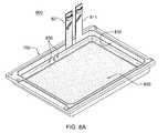 FIG. 8A depicts an underside, perspective view of one embodiment of a tamper-respondent assembly comprising an electronic enclosure and multiple tamper-respondent sensors, in accordance with one or more aspects of the present invention;
