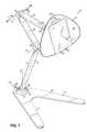 As illustrated inFIG. 3,arm release54 may be coupled to hinges40,42 using one or moreflexible Bowden cables58, each including anouter sleeve60 and aninner wire62 that slides withinouter sleeve60.Inner wire62 projects around apulley64 and is secured to handle56 within aslot66.Inner wire62 extends along acam surface68 formed onhandle56 such that, when the handle is pivoted in the direction ofarrow70,inner wire62 is pulled in the direction ofarrow72.Outer sleeve60 is retained in a fixed position against aledge74 formed proximate a clamping arrangement defined by opposingmembers76,78 of arear panel80 ofhead18, such that when handle56 is actuated by the user,inner wire62 will slide withinouter sleeve60.