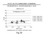 FIG. 31 provides two graphs which compare the FtF of the ICS=48° MPF vs. TPF plungers made from the control resin under various molding conditions for different plunger arm widths.