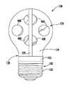 FIG. 22 shows an embodiment of a two-piece LED board as previously described with respect toFIG. 14 with an electrical interconnect used to connect thelamp electronics110 to theLED board302. A flex circuit may be used to support the LEDs and provide the electrical path from the electrical interconnect to the LEDs.FIG. 23 is an embodiment of asingle LED board129 without a reflector or a reflective LED board. A flex circuit may be used to support the LEDs and provide the electrical path from the electrical interconnect to the LEDs.FIGS. 24 and 25 are examples of flex circuits usable in the lamp of the invention that may be provided with multiple positions for the LEDs and anode side andcathode side contacts96,98 for connecting the flex circuit to the electrical path.