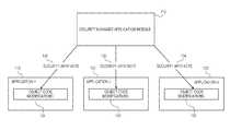 The policies (and commands) may be retrieved by each software application118-122 from the securitymanager application module112, as shown inFIG. 9. Alternatively, as shown inFIG. 10, the policies (and commands) may be retrieved by each software application118-122 from apolicy server138 that is external to the device. In one embodiment, the policies (and commands) may be retrieved by each software application118-122 from the securitymanager application module112, which retrieves policies (and commands) from thepolicy server138 that is external to the device. As shown inFIG. 11, the policies (and commands) may also be retrieved by each software application118-122 (including the security manager application module112) from another software application118-122 that previously retrieved the policies (and commands). As can be appreciated, the retrieval of policies (and commands) by each software application118-122 (including the security manager application module112) may be performed using various methods including, but not limited to, push mechanisms, pull mechanisms, polling, callback functions, registering for events, broadcasts, and the like.