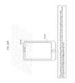 FIG. 438 is a diagram illustrating flow of screen displayed on thewearable device101 from when the user receives the information from theserver103 in front of the store to when the user actually buys a product. In front of the store, the points provided when the user visits the store and the coupon information are displayed. When the user taps the coupon information, the information according to the user preference transmitted from theserver103 is displayed. For example when the user taps “TV”, recommended TV information is displayed. When the user presses the buy button, a receiving method selection screen is displayed to enable the user to select the delivery to the home or the reception in the store. In this embodiment, in which store the user is present is known, and so there is an advantage that the user can receive the product in the store. When the user selects “guide to sales floor” inflow403, thewearable device101 switches to a guide mode. This is a mode of guiding the user to a specific location using an arrow and the like, and the user can be guided to the location where the selected product is actually on display. After the user is guided to the store shelf, thewearable device101 switches to a screen inquiring whether or not to buy the product. The user can determine whether or not to buy the product, after checking the size, the color, the usability and the like with the actual product.