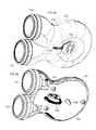 FIGS. 3C and 3D also show the coils ofwire35 that are wound aroundtoroidal cores36, consisting of high-permeability material (e.g., Supermendur). Lead wires (not shown) for thecoils35 pass from the stimulator coil(s) to the impulse generator (310 inFIG. 1) via theelectronics port32. Different circuit configurations are contemplated. If separate lead wires for each of thecoils35 connect to the impulse generator (i.e., parallel connection), and if the pair of coils are wound with the same handedness around the cores, then the design is for current to pass in opposite directions through the two coils. On the other hand, if the coils are wound with opposite handedness around the cores, then the lead wires for the coils may be connected in series to the impulse generator, or if they are connected to the impulse generator in parallel, then the design is for current to pass in the same direction through both coils.