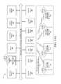 FIGS. 15A through 15F illustrate hardware diagrams of a device that include a service processor and a bus structure extension using intermediate modem or networking device combinations in accordance with various embodiments.