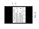 FIG. 75 illustrates a pop-up window/message presented through a touch-screen display of a wireless end-user device, in accordance with an exemplary embodiment, to indicate that account control is currently off for a device, and allowing the user to enable account control for that device.