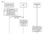 - specifically, reconfiguration of spectrum resources can be triggered in the case of appearance of a main user, configuration of Operation Administration and Maintenance (OAM), a request of an adjacent reconfiguration decision module and an idle spectrum resource application sent by an RBS, wherein the appearance of the main user means that the main user will reuse a spectrum resource originally borrowed by a secondary system, which can be sensed, measured and discovered by a subordinate node of the reconfiguration decision module and notified to the reconfiguration decision module, or may be also notified to the reconfiguration decision module by a main user spectrum use situation database; the configuration of OAM means that OAM makes a spectrum resource optimization decision to notify the reconfiguration decision module to further transmit a reconfiguration command, and so on; the request of the adjacent reconfiguration decision module means that when a reconfiguration decision module adjacent to the reconfiguration decision module is reconfigured according to requirements of itself, since the reconfiguration affects use of spectrums of a subordinate node of the reconfiguration decision module, e.g. interference is caused etc., the adjacent reconfiguration decision module needs to send a request to the reconfiguration decision module to negotiate use of spectrum resources; an idle spectrum resource request of a subordinate node means that a subordinate node of the reconfiguration decision module triggers a request for an idle spectrum resource due to shortage of spectrum resources, and/or the incapability of the communication quality of a subordinate link in meeting QoS requirements (e.g. bad conditions of communication quality);