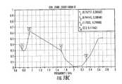 Referring now toFIG. 20D, envelope correlation coefficients are illustrated for the hybrid antenna having theimpedance matching network2001 connected to themonopole antenna element503m. In particular,FIG. 20D illustrates that the hybrid antenna with the impedance matching network2001 (FIG. 20A) exhibits improved performance in comparison with the hybrid antenna without an impedance matching network connected to themonopole antenna element503m(FIGS. 19A and 19C). For example,FIG. 20D indicates correlation coefficients of about 0.367 and 0.357 for the low band frequencies of about 0.733 GHz and 0.964 GHz, respectively. These correlation coefficients are lower than the values illustrated inFIG. 19C, thus indicating improved performance with the hybrid antenna having theimpedance matching network2001 connected to themonopole antenna element503m(FIG. 20A).