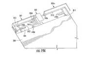 Referring still toFIG. 19A, thefirst portion1911 of the c-fedantenna element501 may include a perimeter portion that is located along a perimeter of the multi-band wireless communications terminal120 that houses the hybrid antenna. Also, theside portion1911sof thefirst portion1911 of the c-fedantenna element501 may be located between thesecond portion1921 of the c-fedantenna element501 and theparasitic element502. On the other hand, thefirst portion1912 of themonopole antenna element503mmay include a perimeter portion, but not a side portion between thesecond portion1922 of themonopole antenna element503mand theparasitic element502. In other words, thesecond portion1922 of themonopole antenna element503mmay be separated from theparasitic element502 only by thedielectric material504.