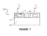 Referring now toFIG. 7, a detailed view of the first andsecond antennas501,503 is provided, according to some embodiments of the present inventive concept. The first andsecond antennas501,503 may each include first and second spaced-apartportions711,721. Thefirst portion711 may partially surround thesecond portion721. In some embodiments, thefirst portion711 may surround a majority of a perimeter of thesecond portion721. For example, thefirst portion711 may be substantially U-shaped, and the majority of the second portion721 (e.g., a substantially rectangular shape) may be surrounded by the U-shapedfirst portion711.