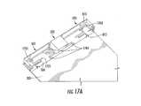 FIGS. 16A-16C illustrate athird antenna1605, according to some embodiments of the present inventive concept. Thethird antenna1605 may be integrated with theparasitic element502 of theantenna portion310. In some embodiments, thethird antenna1605 between the first andsecond antennas501,503 (e.g., two MIMO antennas) may be a GPS antenna and/or a WLAN (e.g. Wi-Fi) antenna, and/or may be a notch or ceramic loaded patch antenna. For example, thethird antenna1605 may be a notch/slot antenna on/in theparasitic element502 between the first andsecond antennas501,503. In some embodiments, thethird antenna1605 may be a receive-only antenna (e.g., a GPS antenna). Additionally, the compact design incorporating thethird antenna1605, the first andsecond antennas501,503, and theparasitic element502 may provide good MIMO performance.
