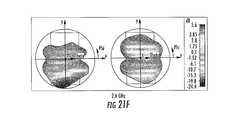 FIGS. 21A-21F illustrate radiation patterns for the hybrid antenna, according to some embodiments of the present inventive concept.