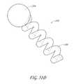 FIG. 51D illustrates one embodiment of a fatigue-resistant terminal portion of a proximal and/or distal end of one, two, or more of thestruts374,376,378 illustrated inFIG. 51D. Theterminal portion51D may have anon-linear portion378′ and ahead portion379. The non-linear portion could be a coil with a helical, zig-zag, or any other generally non-linear shape to advantageously provide increased fatigue resistance for the struts. In some embodiments, at least a portion of theterminal portion51D is embedded in an elastomer such as silicone, polycarbonate, urethane, or the like to further improve fatigue tolerance. In some embodiments, theterminal portion51D may have a straight-line length that is less than 20%, 15%, 10%, 5%, or less of the strut. In some embodiments, theterminal portion51D may have a straight-line length that is at least about 5%, 10%, 15%, 20%, 25%, or more of the length of the strut, or could even cover the entire length of one, two, ormore struts374,376,378 fromfirst attachment zone370 to second attachment zone372 (e.g., a strut without a linear portion).Head portion379 is operably connected tonon-linear portion378′ and the portions may be integrally formed. Thehead portion379 could be spherical, ovoid, square, rectangular, triangular, or a variety of other shapes.Head portion379 is in turn operably connected tofirst attachment zone370 and/orsecond attachment zone372. In some embodiments, thehead portion379 is not attached to an attachment zone but rather terminates as a free end of one or more of thestruts374,376,378.