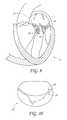 FIGS. 59 and 60 schematically illustrate the function of a normalaortic valve22 in systole and diastole, respectively. Theaortic cusps502 are semi-lunar (crescent shaped), their bases are attached to theannulus500, the free margins ofcusps502 extend from commissure to commissure, andcusps502 coapt centrally during diastole. During systole, as schematically shown inFIG. 59, the threeaortic valve cusps502 open towards theaorta20 permitting the blood from theleft ventricle16 to be ejected in theaorta20 without any impediment to the flow. Themitral valve18 is closed during systole as shown. During diastole, the pressure in the ascendingaorta20 is greater than the left ventricular chamber16 (which relaxes during diastole) causing theaortic valve cusps502 to meet in the center and close, preventing leakage of the blood back into theleft ventricle16, as illustrated inFIG. 60. Themitral valve18 is open during diastole to allow theleft ventricle16 to fill with oxygenated blood from theleft atrium12.
