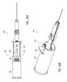 FIGS. 27A-27B illustrate the position of theshunt300 within theneedle component120 and relative to thesleeve124 when theinserter500 is in the initial position ofFIG. 26A and the final position ofFIG. 26B, respectively. The movement and function of theplunger122, theneedle component120, and thesleeve124, as well as the resultant movement of theshunt300 can be substantially identical to the function and movement of these components in theinserter100.
