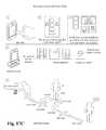 A target, such as those illustrated inFIGS. 25 and 26B, can be removably coupled with an object to be track, a target can be integral with an object or with a part of an object. For example,FIG. 29A showstargets2900,2905 that when pieced together, form a manual toothbrush that can be used with a tooth brushing application. Similarly configured as the toothbrush inFIG. 29A,FIG. 29B showstargets2900′,2905′ that when pieced together, form an electric toothbrush that can also be used with a tooth brushing application. Different target pieces can be used as they trigger different applications. For example, as illustrated inFIG. 29C, thetarget2905atriggers a music application, thetarget2905btriggers a story application, and thetarget2905ctriggers a soccer game application.