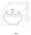 BRIEF DESCRIPTION OF THE DRAWINGSFIG. 1 is a schematic diagram illustrating a contact arrangement for a conventional eight-position communications jack as viewed from the front opening (plug aperture) of the jack.