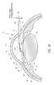 In a normal eye, at least some of the aqueous humor drains from theanterior chamber32 through a trabecular meshwork into Schlemm's canal and thereafter through a plurality of collector ducts and aqueous veins, which merge with blood-carrying veins, and into systemic venous circulation. Intraocular pressure is maintained by an intricate balance between secretion and outflow of aqueous humor in the manner described above. Glaucoma is, in most cases, characterized by an excessive buildup of aqueous humor in theanterior chamber32, which leads to an increase in intraocular pressure. Fluids are relatively incompressible, and thus intraocular pressure is distributed relatively uniformly throughout theeye10.