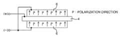 If a driving voltage for driving thepiezoelectric vibrator2 is applied to the piezoelectric element layers6 and themiddle electrode plate4, positive charges and negative charges in the piezoelectric elements layers6 are aligned in a polarization direction from an arbitrary arrangement state. If positive and negative voltages are alternately applied to themiddle electrode plate4 and the piezoelectric element layers6 connected in parallel as illustrated inFIG. 1, an expansion and contraction phenomenon occurs.