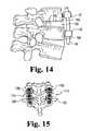 FIG. 15 is a front view of a portion of an orthopedic implant system attached to a part of a spinal column.