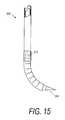In some variations, the third notchedsleeve420 is configured with its smooth (non-notched)surface424 disposed to face inwardly on the articulated working end (FIG. 11) such that a solid surface forms the interior of the curved portion of the workingend410. Thesmooth surface424 allows withdrawal of thedevice110 into a cannula orintroducer205 without creating a risk that the slots or notches become caught on a cannula205 (see e.g.,FIG. 7B).