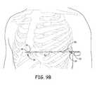 FIGS. 9A-9I illustrated another example method of implanting an implantable medical lead, such asdefibrillation lead16, using an implant tool, such as the implant tool illustrated inFIGS. 2A and 2B. The techniques illustrated inFIG. 9, however, may be performed using other implant tools/kits described herein. As illustrated inFIG. 9A, afirst incision90 is made at a location on the side of the torso ofpatient12 and asecond incision92 is made at a location near the center of the torso ofpatient12. For example,first incision90 may be made between the anterior axillary line and the posterior axillary line on the left side ofpatient12 andsecond incision92 may be made near the xiphoid process ofpatient12. However,first incision90 andsecond incision92 may be made at other locations on the side and center of the torso, respectively. For example,second incision92 may be offset to the left or right of the xiphoid process of the patient. As another example,second incision92 may be made superior or inferior to the xiphoid process of the patient. Although described herein as first and second incisions, the incisions may be made in any order.
