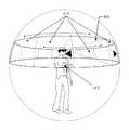 FIG. 5 is a side perspective graphic illustration of a spherical virtual reality construct presentation to a user by a device according to the present invention.