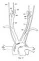 FIGS. 18a, 18b, and 18cillustrate theportions874,878,876, respectively, of therenal artery854 in perspective view, showing the sympatheticrenal nerves870 that line therenal artery854.FIG. 18aillustrates theportion874 of therenal artery854 including therenal nerves870, which are shown schematically as a branching network attached to the external surface of therenal artery854. Therenal nerves870 extend generally lengthwise along the longitudinal axis LA ofrenal artery854. In the case of hypertension, the sympathetic nerves that run from the spinal cord to thekidneys852 signal the body to produce norepinephrine, which leads to a cascade of signals ultimately causing a rise in blood pressure. Neuromodulation of the renal nerves870 (or renal denervation) removes or diminishes this response and facilitates a return to normal blood pressure.
