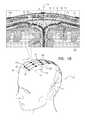 - treating the subject by electroosmotically driving fluid from asubarachnoid space50 to superiorsagittal sinus40, by activatingcontrol circuitry34 to apply one or more treatment currents between (a) one or more ofmidplane treatment electrodes30 and (b) one or more of lateral treatment electrodes32 (each of the treatment currents is schematically illustrated in the figures by a plurality of current lines52).